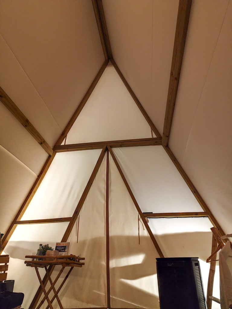 Agora… o alojamento. Como é que eu explico? Parece saído de um filme dos anos 60 — todo rústico, antigo, mas super prático. Estou a adorar!