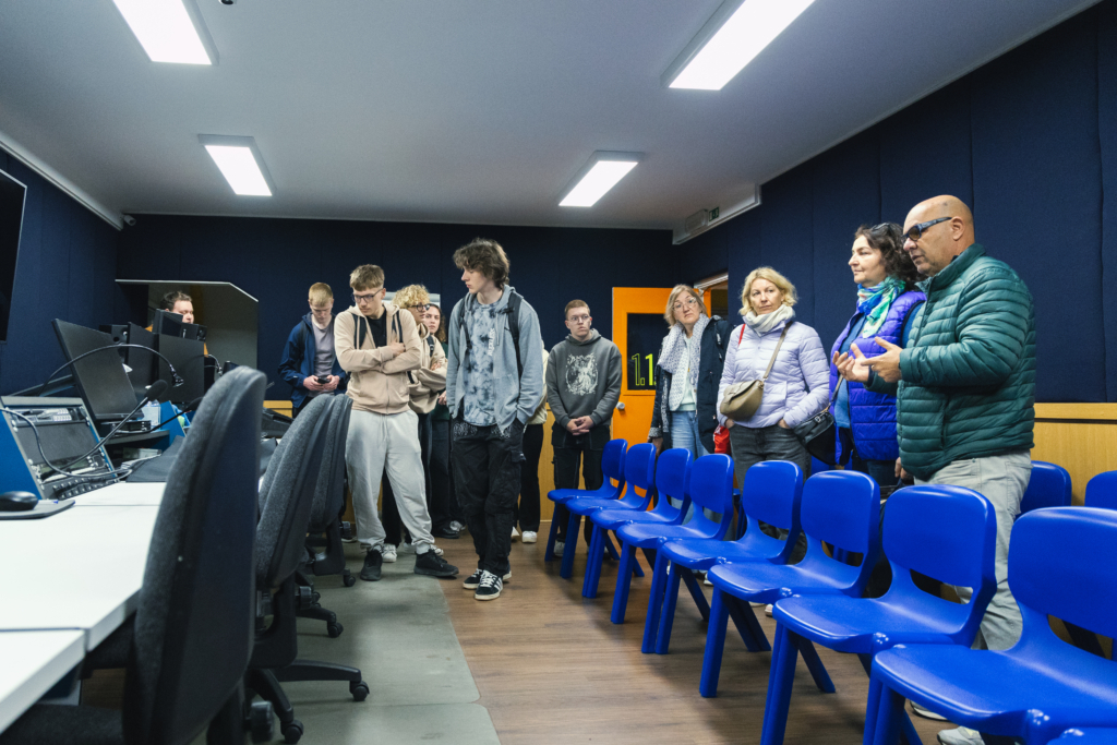 A visita foi acompanhada pelo coordenador do curso, Rui Lança, que guiou o grupo pelas diferentes áreas da escola, promovendo a partilha de experiências e o intercâmbio de conhecimentos entre as duas instituições.